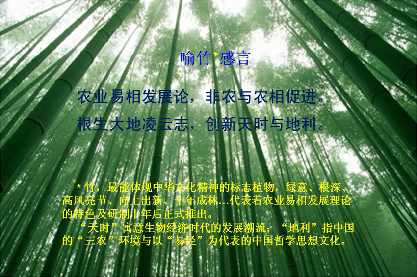 农业易相发展理论(Yi-theory of Agricultural Development)正是在生物经济成长、生物经济时代来临的背景下,伴随酝酿中的第二次绿色革命而诞生的新理论,是指将传统的农业范畴拓展到“非农”范畴,反过来通过“非农”来促进农业的发展,以致达到农与“非农”共生共荣、整体和谐发展状态的系统知识